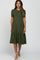 A solid ribbed short sleeve maternity dress with scoop neckline and tiered body.