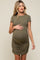 Olive Ruched Fitted Short Sleeve Maternity Dress