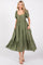 Olive Ruched Sweetheart Neck Tiered Midi Dress