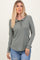 Olive Ruffle Collar Micro Waffle Knit Henley Top