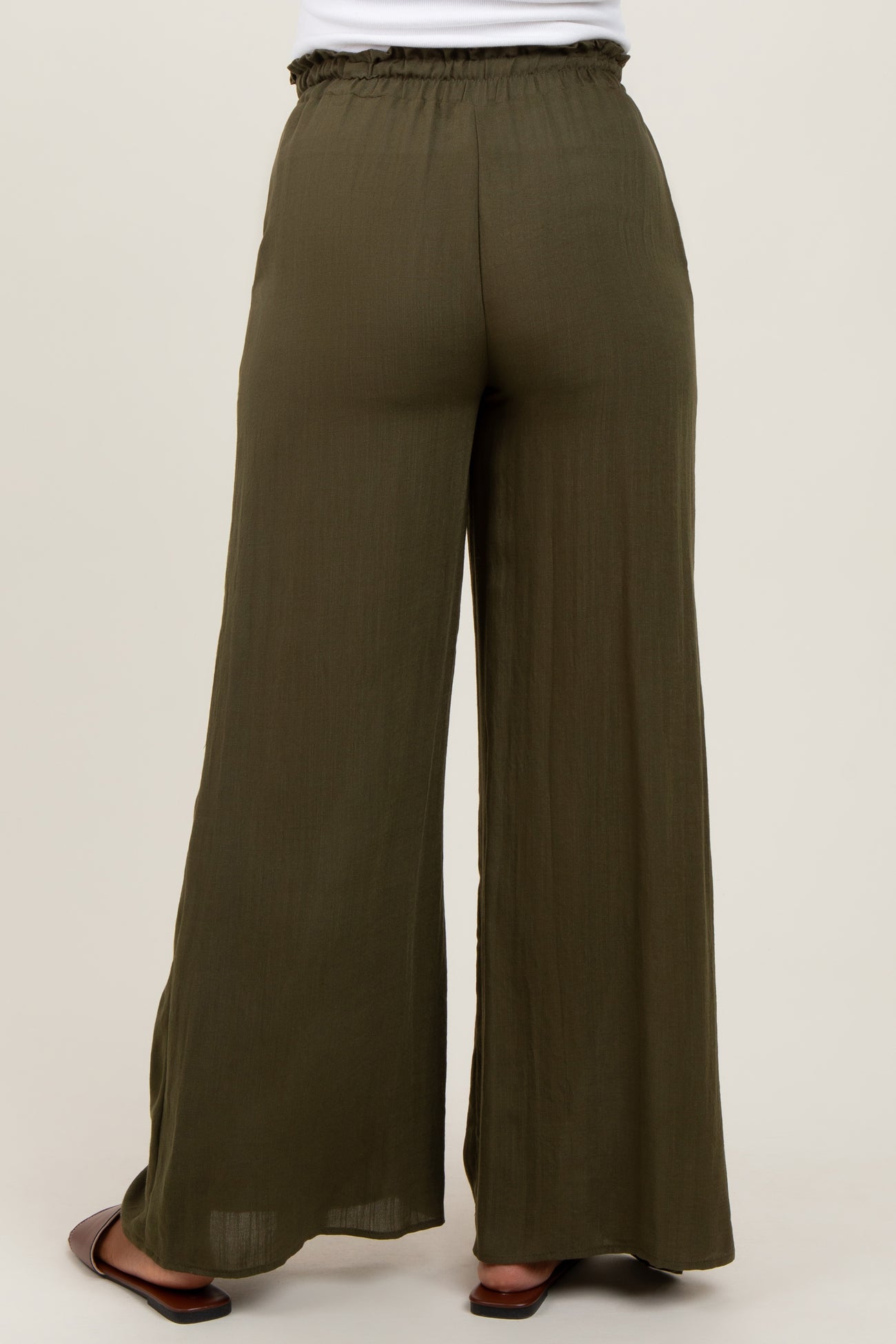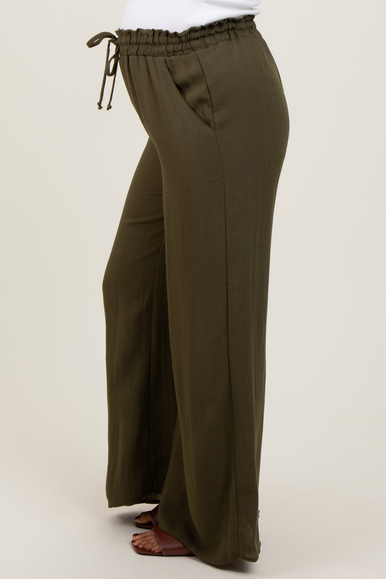 Olive Ruffled Drawstring Waist Wide Leg Maternity Pants