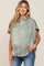 Details A satin button down maternity top with a collar, short dolman cuffed sleeves, smocked shoulder accents, and a hi-lo rounded hem. Content + Care