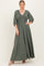 Olive Solid 3/4 Sleeve Smocked Top V-Neck Maxi Dress