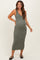 Olive Stripe Ribbed Sleeveless V Neck Maternity Maxi Dress