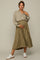 Olive Suede Pleated Maternity Midi Skirt