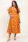 Orange Embroidered Floral Puff Sleeve Maternity Midi Dress