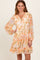 Orange Floral Chiffon Babydoll Long Sleeve Dress