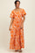 Orange Floral Smocked Puff Sleeve Maxi Dress