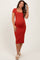 Orange Ribbed Short Sleeve Side Slit Maternity Midi Dress