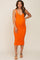 Orange Ribbed Sweetheart Neck Maternity Midi Dress