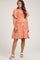 A floral maternity dress with a smocked bodice, a v-neckline, short sleeves, cinched ruffle accent shoulders, and a ruffle accent at the waist. Skirt is lined.