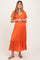 Orange Smocked Flutter Sleeve Midi Dress