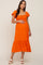 Orange Smocked Ruffle Hem Maternity Midi Dress
