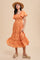 Orange Smocked Short Sleeve Midi Dress
