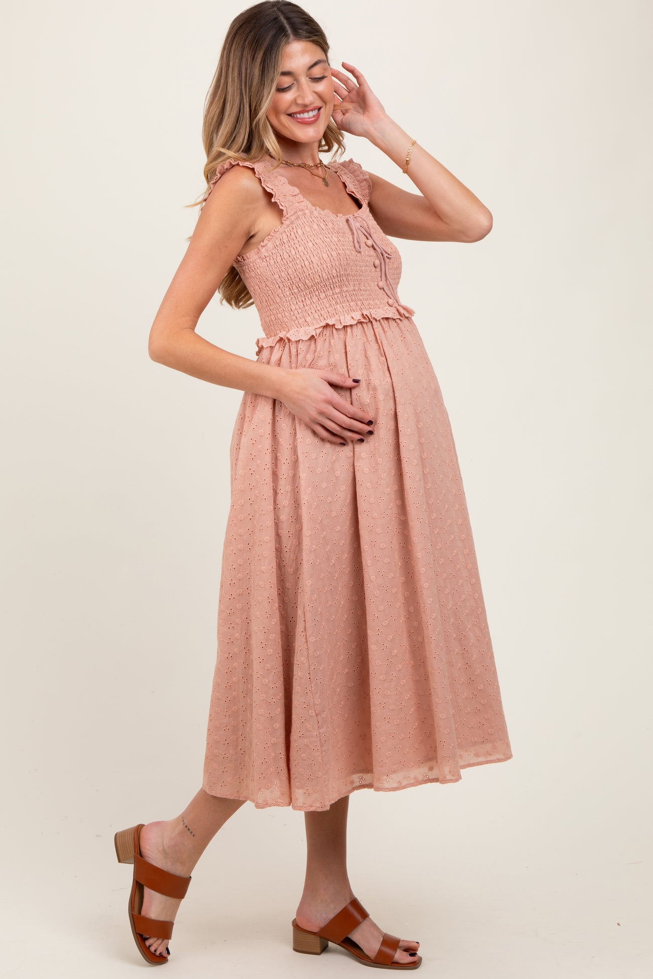 Peach Eyelet Sleeveless Maternity Midi Dress