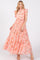 Peach Floral Chiffon Ruffle Shoulder Tiered Maxi Dress