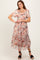 Peach Floral Mesh Sweetheart Neck Midi Dress