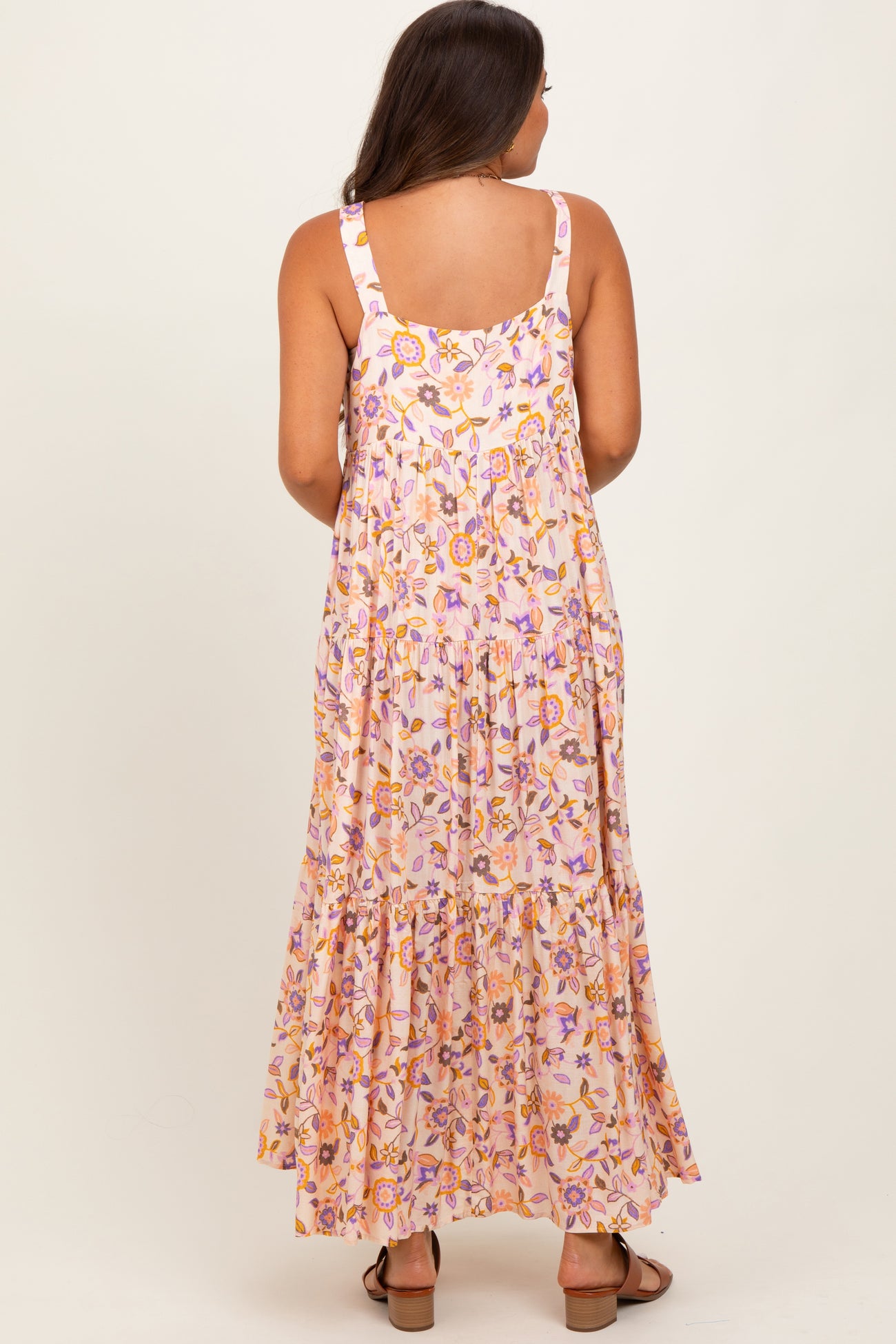 Peach Floral Sleeveless Tiered Maternity Maxi Dress