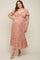 Peach Floral Sweetheart Drawstring Neck Short Sleeve Maternity Plus Midi Dress