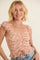 Peach Floral Sweetheart Smocked Ruched Ruffle Top