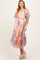 Peach Leaf Print Smocked Mesh Overlay Maternity Dress