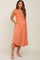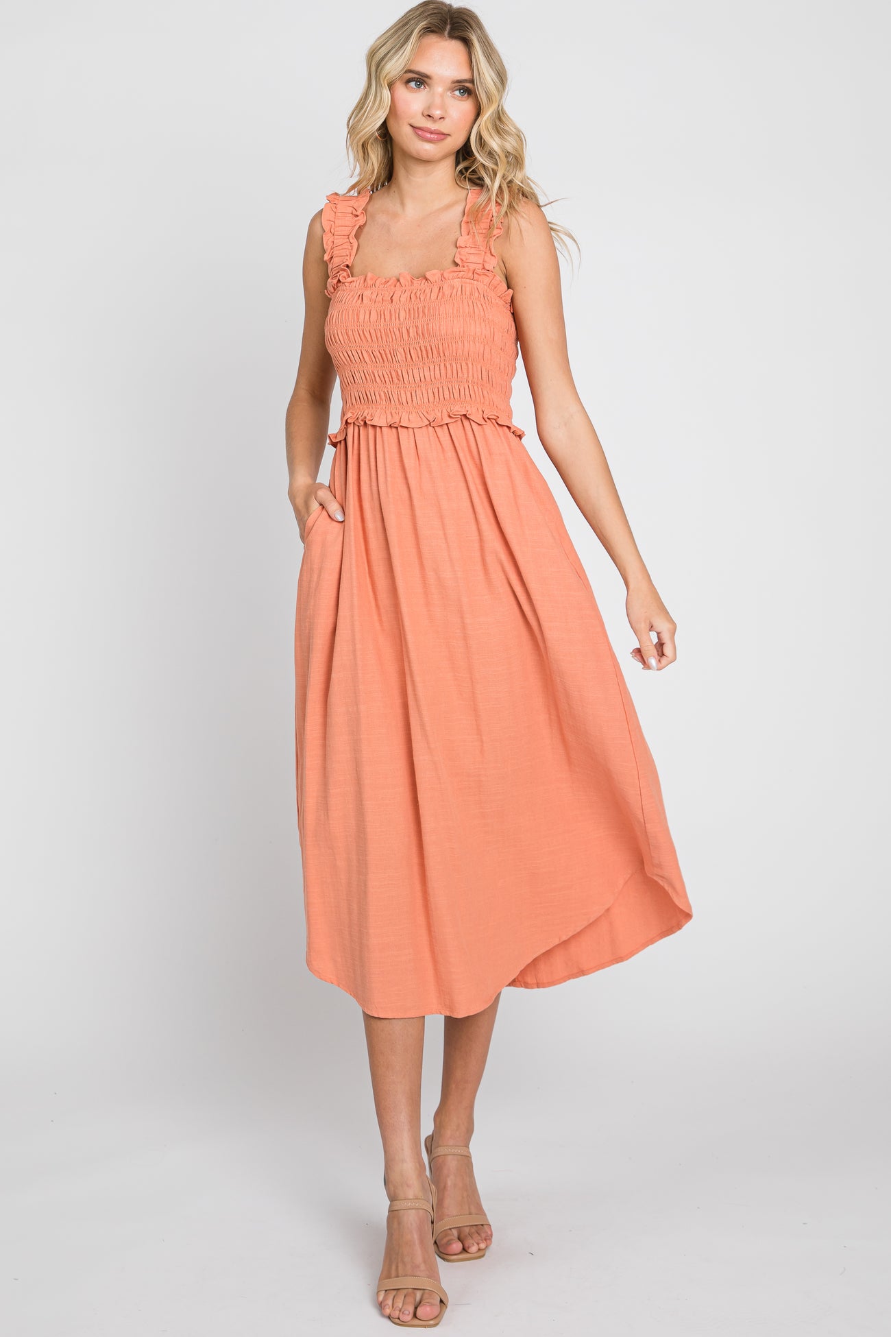 Peach Square Neck Smocked Sleeveless Maternity Midi Dress
