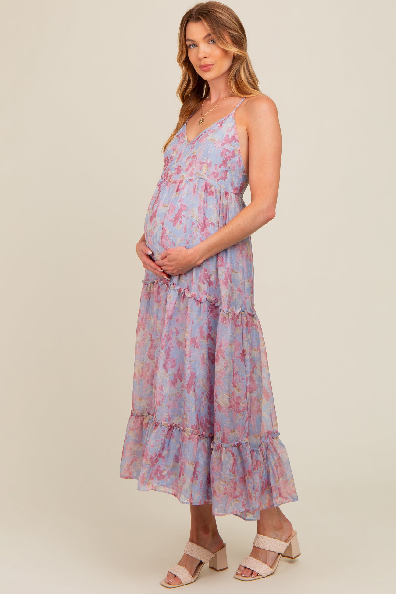 Periwinkle Abstract Floral Crisscross Back Maternity Maxi Dress