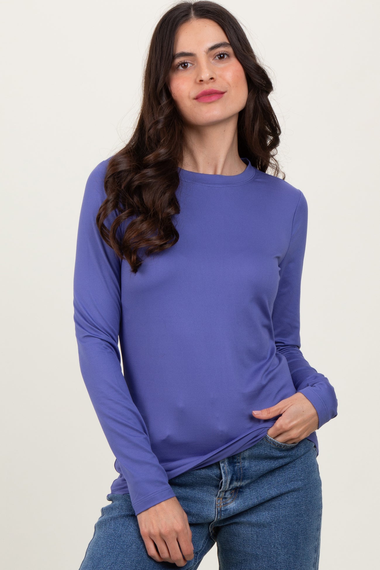 Elevate your everyday wardrobe with our Periwinkle Basic Long Sleeve Top. Crafted from soft, breathable fabric, this versatile top offers a comfortable fit that moves with you. The stunning periwinkle shade adds a fresh pop of color, perfect for transitioning between seasons. Featuring a classic crew neckline and a sleek, form-fitting silhouette, it pairs effortlessly with your favorite jeans or skirts for a casual, polished look. Ideal for layering or wearing solo, this long sleeve top is a must-have staple for any stylish closet. Available in multiple sizes for your perfect fit.