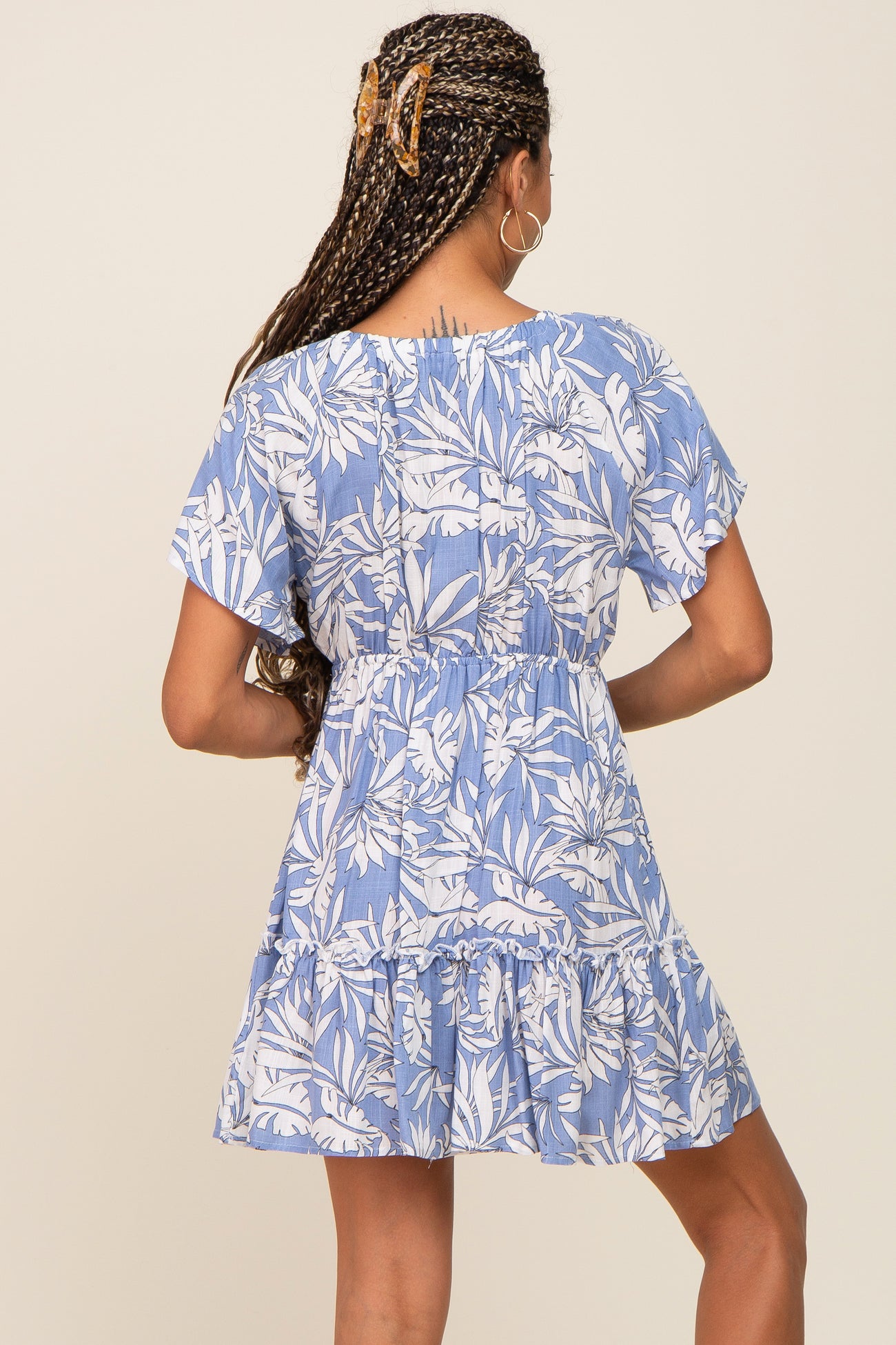 Periwinkle Palm Print Short Sleeve Ruffle Dress