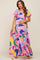 Pink Abstract Print Puff Sleeve Maternity Maxi Dress