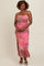 Pink Abstract Print Ruched Side Slit Maxi Dress