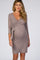An ultra soft, brushed knit maternity/nursing fitted dress featuring a v-neckline with a wrap front and side tie detailing for easy access. Also features 3/4 length sleeves.