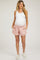 A pair of maternity shorts featuring fleece lining, side pockets and an elastic waist.