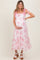Pink Floral Chiffon Overlay Lace Shoulder Tie Maternity Midi Dress