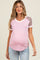 Pink Floral Contrast Short Sleeve Maternity Top