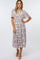 Details A floral print midi dress. Features flutter sleeves and pleated skirt. Keyhole opening with button closure at back. Content + Care