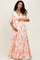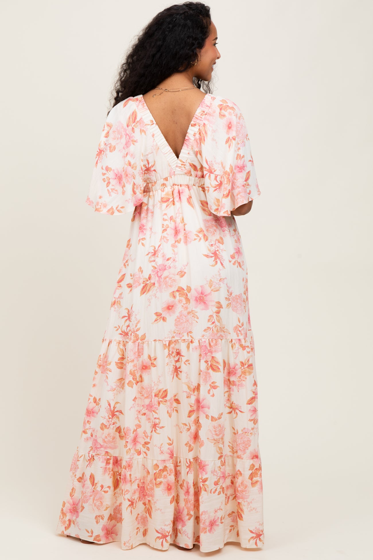 Pink Floral Satin Short Sleeve Deep V-Neck Tiered Maternity Maxi Dress