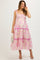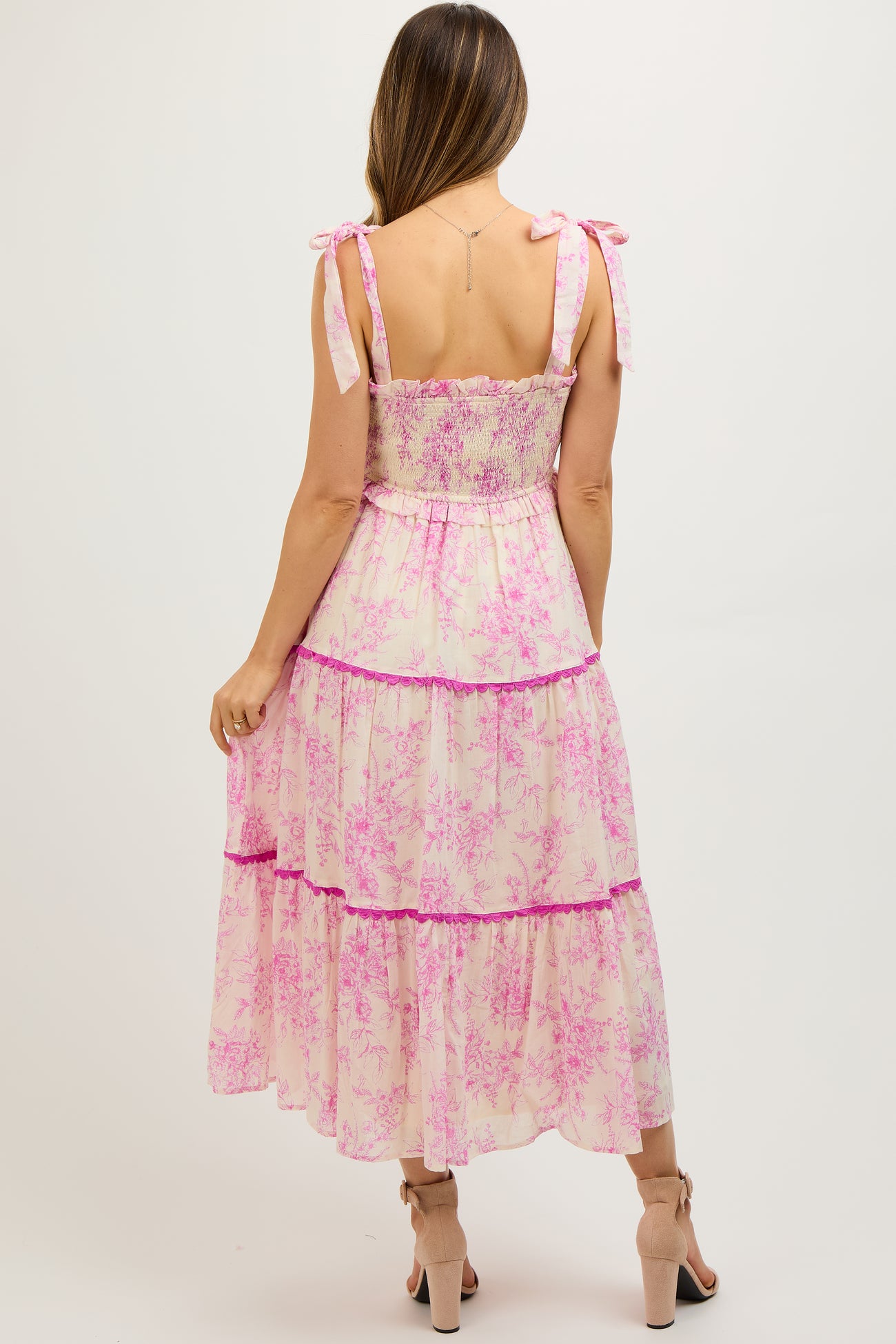 Pink Floral Sleeveless Ruffle Tiered Maternity Midi Dress