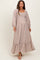 Pink Floral Smocked Lace Trim Sweetheart Maternity Maxi Dress