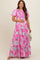 Pink Floral Smocked Short Puff Sleeve Tiered Maternity Maxi Dress
