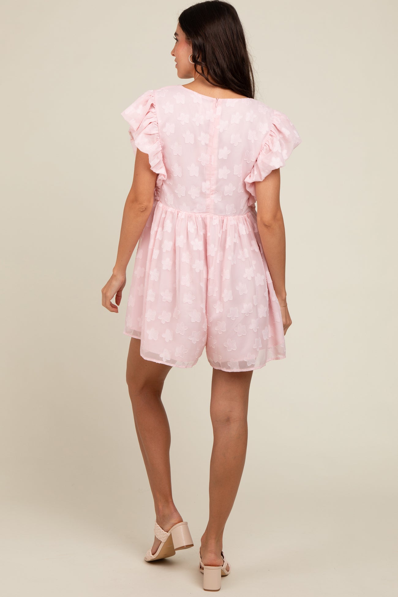 Pink Floral Split V-Neck Ruffle Sleeve Romper