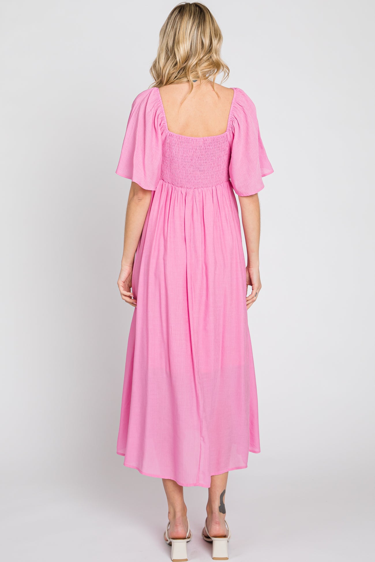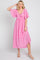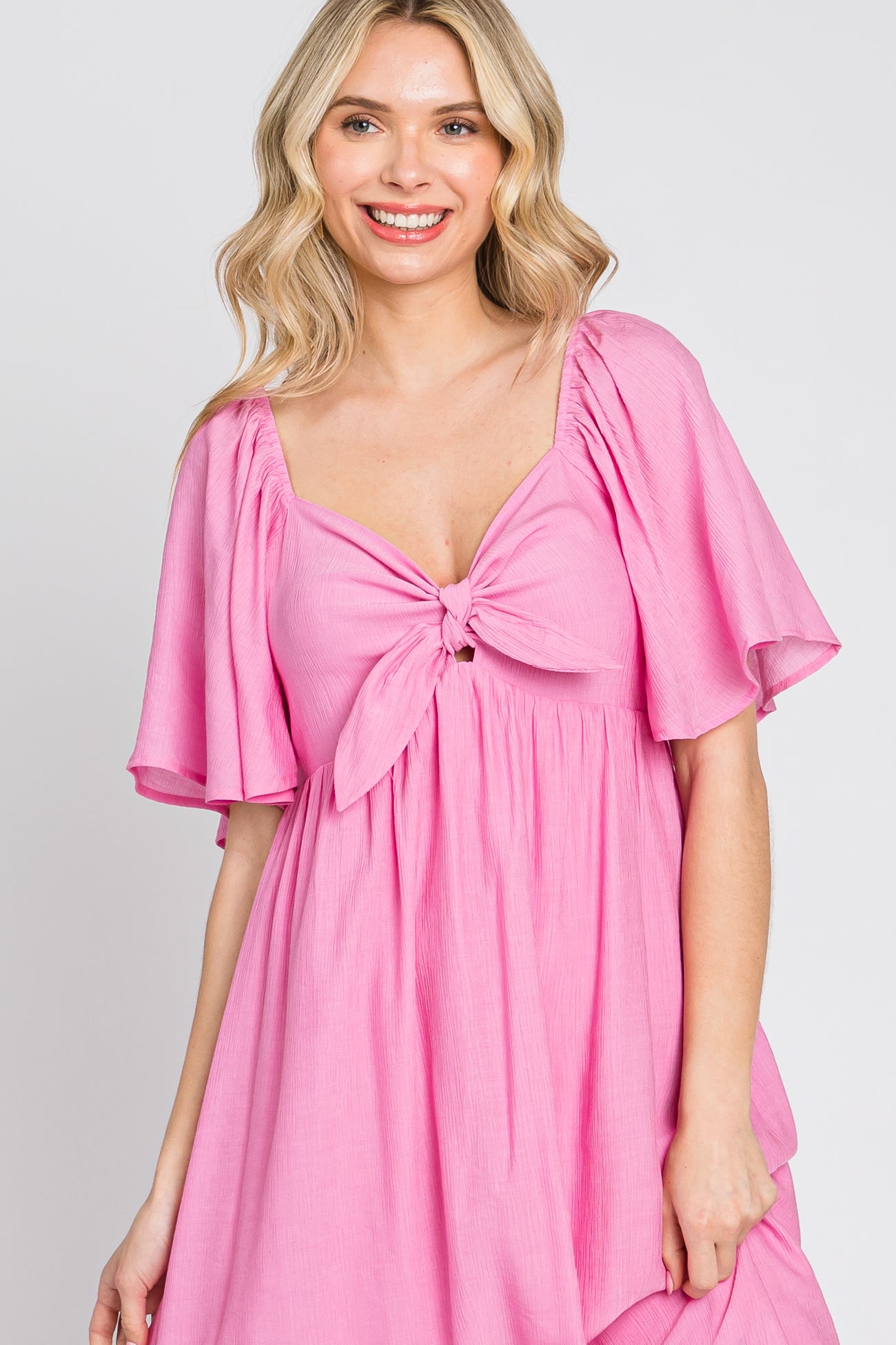 Pink Front Tie Ruffle Sleeve Midi Dress
