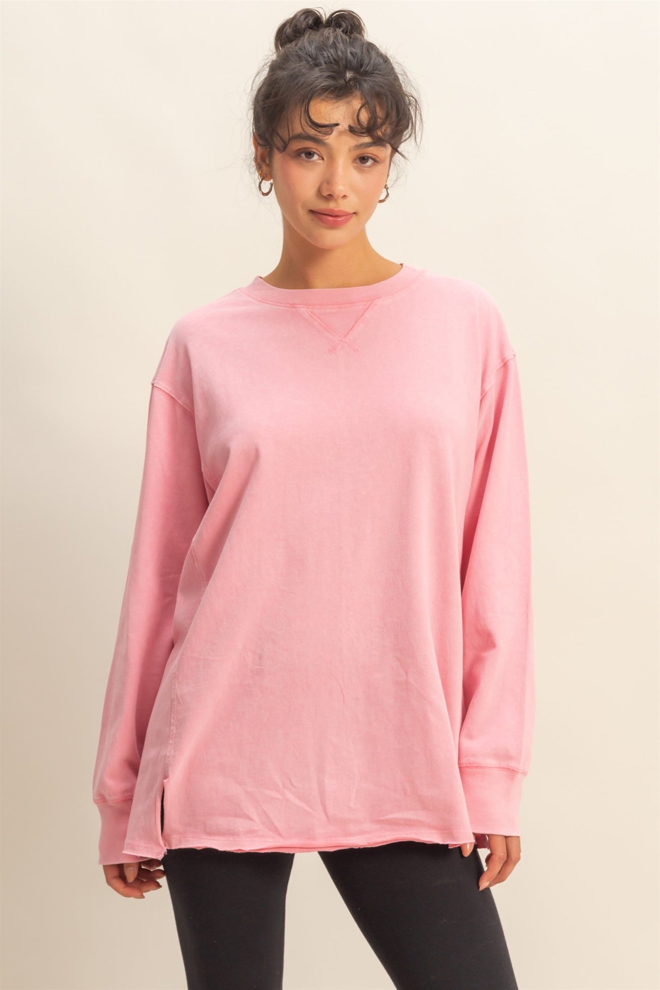 Pink Mineral Washed Drop Shoulder Long Sleeve Maternity Top