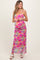 Pink Multi-Color Floral Mesh Ruched Sleeveless Maternity Maxi Dress