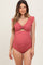Pink Ribbed Cutout Flutter One Piece Maternity Swimsuit