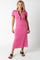 A ribbed knit dress featuring front buttons, short sleeves and a collared neckline.