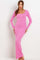 Pink Ribbed Long Sleeve Square Neck Maxi Dress