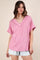 Pink Ribbed Raw Hem Short Sleeve Top