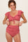 Pink Ribbed Ruffle Shoulder Front Tie High Waist Two-Piece Swimsuit