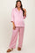 Pink Satin Contrast Trim Pajama Pant Maternity Set